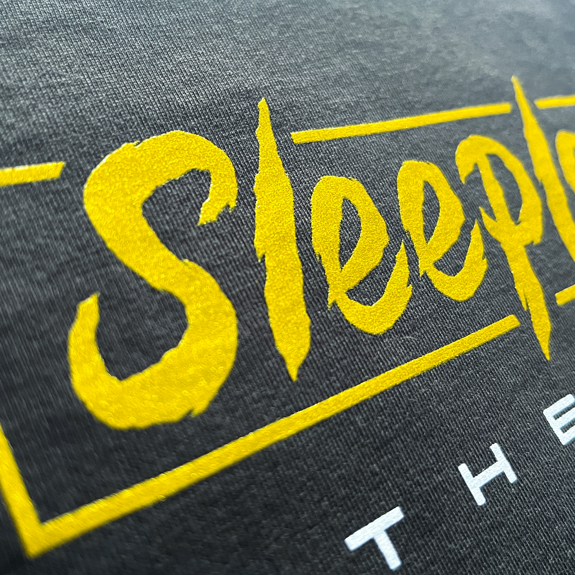 This design features a black, white and metallic gold ink on the front and back. With an iconic Porsche GT3 RS Weissach Package inspired design car silhouette on the back.